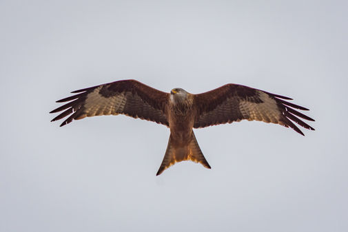 • Das Kopf-, Nacken- und Kehlgefieder erwachsener Rotmilane ist sehr hell
